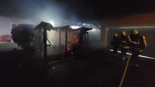 Eine Mülltonne hatte Feuer gefangen und die Flammen breiteten sich rasch auf eine kleine Hütte aus. Dank des schnellen Handelns der Hausbesitzer konnte der Brand jedoch bis zum Eintreffen der Feuerwehr eingedämmt werden. Durch ihr zügiges Eingreifen wurde Schlimmeres verhindert und der Brand konnte sich nicht auf das nahegelegene Carport oder auf das angrenzende Wohnhaus ausbreiten.