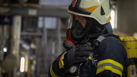 Neben den Atemschutzgeräten mussten die Trupps zusätzliche Ausrüstung mitführen, darunter zwei C-Schläuche, ein Strahlrohr, eine Rettungsleine, eine Feuerwehraxt sowie ein Tragetuch. Nach dem Aufstieg über ein fünfstöckiges Treppenhaus führte die Strecke die Einsatzkräfte durch eine Industrieanlage – begleitet von hoher Umgebungstemperatur und erheblicher Geräuschkulisse. Dort galt es, Kanister mit teilweise gefährlichen Stoffen umzulagern und eine Personenrettung durchzuführen. Anschließend ging es in völliger Dunkelheit durch eine enge, lange Kriechstrecke, die zusätzlich mit Hindernissen versehen war. Es folgten ein Ab- und Aufstieg über senkrechte Feuerleitern, ehe die Trupps zum Ausgangspunkt der Übung zurückkehrten.