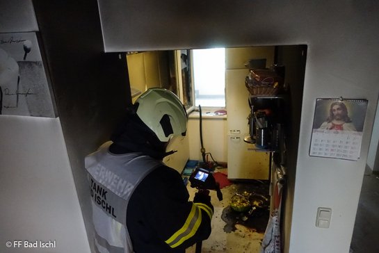 „Bei der Lageerkundung konnte ich sofort durch ein Fenster eine starke Rauchentwicklung, sowie ein Feuer in der Wohnung feststellen. Sofort schickte ich einen Atemschutztrupp mit einem Hochdruckstrahlrohr in die diese“, schildert HBM Kevin Rothauer seine ersten Eindrücke am Einsatzort.