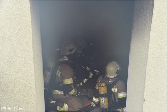 Die Trupps mussten in diesem realistischem Training zuerst in den Keller, dort wurde in einem Raum mit brennendem Material so richtig eingeheizt, dies dient dazu, den Körper an hohe Temperaturen und Rauch zu gewöhnen. Nach etwa 10 Minuten ging es in den ersten Stock, wo vorgegebene Aufgaben zu erfüllen waren – natürlich mit realistischen Bedingungen. Nach etwa 17 Minuten kamen die Trupps erschöpft zurück und konnten nach kurzen und hilfreichen Reaktionen/Kommentaren der begleitenden Ausbildner den „Einsatz“ beenden.