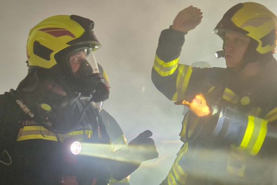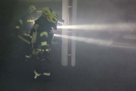 Angenommen wurde ein Brand bei einer E-Ladestation in der Tiefgarage des Vivea-Gesundheitshotels in Bad Goisern. Neben der eigentlichen Brandbekämpfung galt es auch noch nach mehreren Vermissten zu suchen und diese zu retten. Gleich mehrere Atemschutztrupps kamen hierbei zum Einsatz, welche sich unter erschwerten Bedingungen in dem (künstlich) verrauchten Objekt zurecht finden mussten. Alle Vermissten konnten schließlich aufgefunden und zügig mittels Schleifkorbtragen nach draußen „gerettet“ werden. Hierbei kam auch die Hubrettungsbühne zum Einsatz, um Personen in Sicherheit zu bringen. Richtig beeindrucken konnte auch das neue Lösch-Unterstützungsfahrzeug (LUF) der Hauptfeuerwache Bad Ischl, mit dem binnen kürzester Zeit der gesamte Rauch aus der Tiefgarage geblasen werden konnte. Die Wiederbefüllung der verbrauchten Atemluftflaschen erfolgte im Anschluss beim Stützpunkt-Atemschutzfahrzeug der FF Bad Goisern. Ein ganz besonderer Dank gilt den Verantwortlichen des Gesundheitshotels, welche diese realistische Übung ermöglicht und als Wertschätzung für die Leistung der Feuerwehrkräfte auch noch zu einer stärkenden Jause eingeladen hatten. Danke auch an die Kameraden aus Bad Ischl für deren Unterstützung und Vorstellung des neuen Einsatzgeräts.