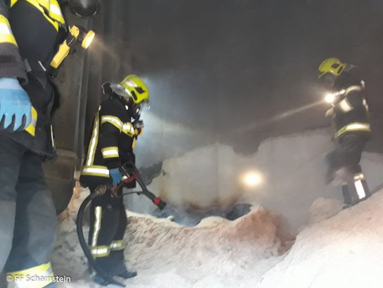 Mitarbeiter kontrollierten den Silo und bemerkten dabei eine erhebliche Rauchentwicklung im Silo. Die Feuerwehr Scharnstein löschte den betroffenen Bereich ab und räumte einen großen Teil des Silos komplett aus. Vermutlich dürfte sich nachdem Einsatz am Montag noch ein Glutrest im verbleibenden Teil der Sägespäne befunden haben und so einen weiteren Glimmbrand ausgelöst haben.
